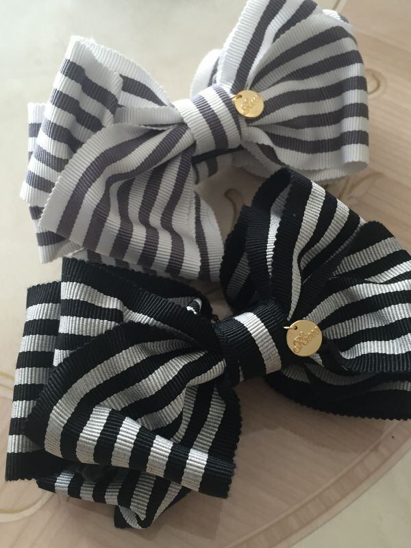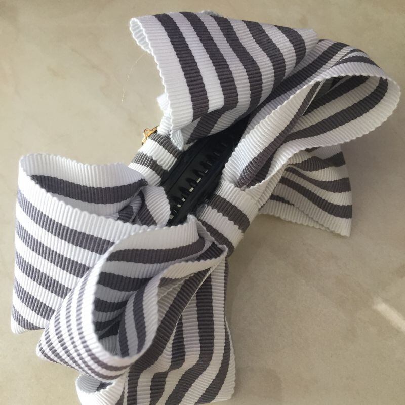 5.5センチ幅の上質なストライプリボンのバナナクリップです。