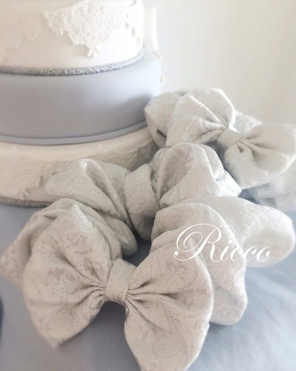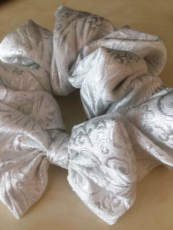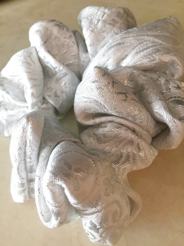 シュシュとしてはもちろん、細いバレッタと組み合わせてつければ